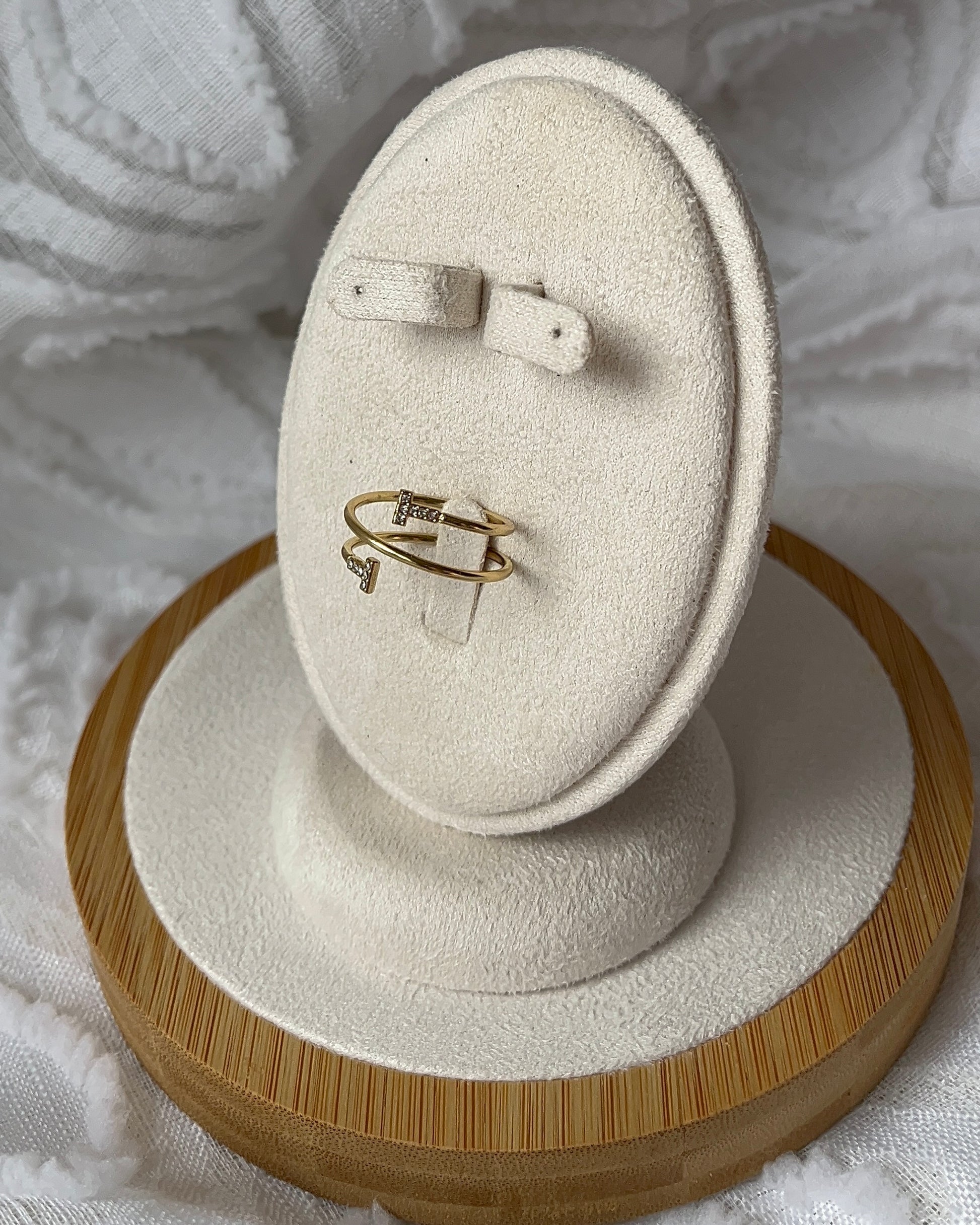 Bague en acier inoxydable doré et oxyde de zirconium.