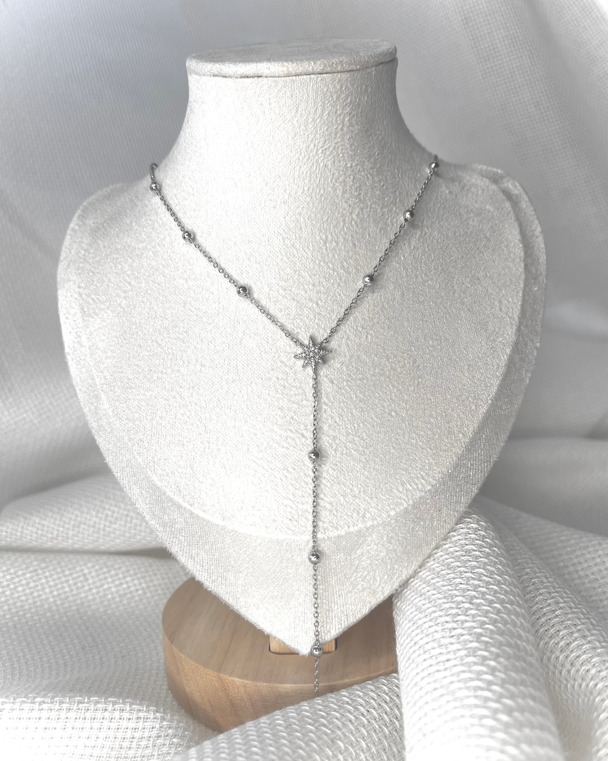 Dimension : 44cm au total dont 6,5cm de chaîne d’attache et 11cm entre l’étoile et la dernière.
