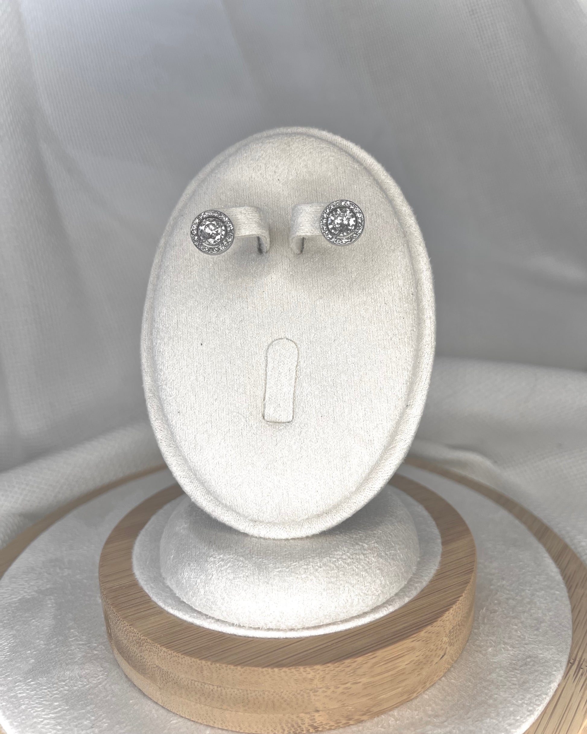 Boucle d’oreille en acier inoxydable blanc avec oxyde de zirconium.