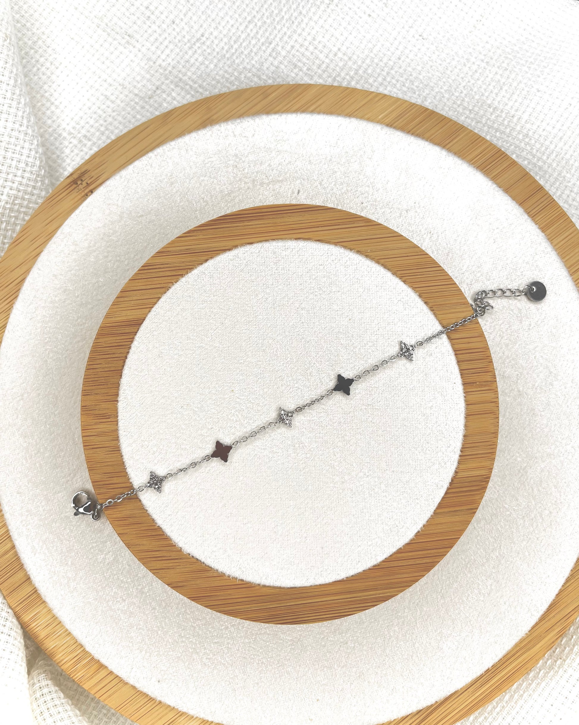 Bracelet acier inoxydable blanc et oxyde de zirconium.