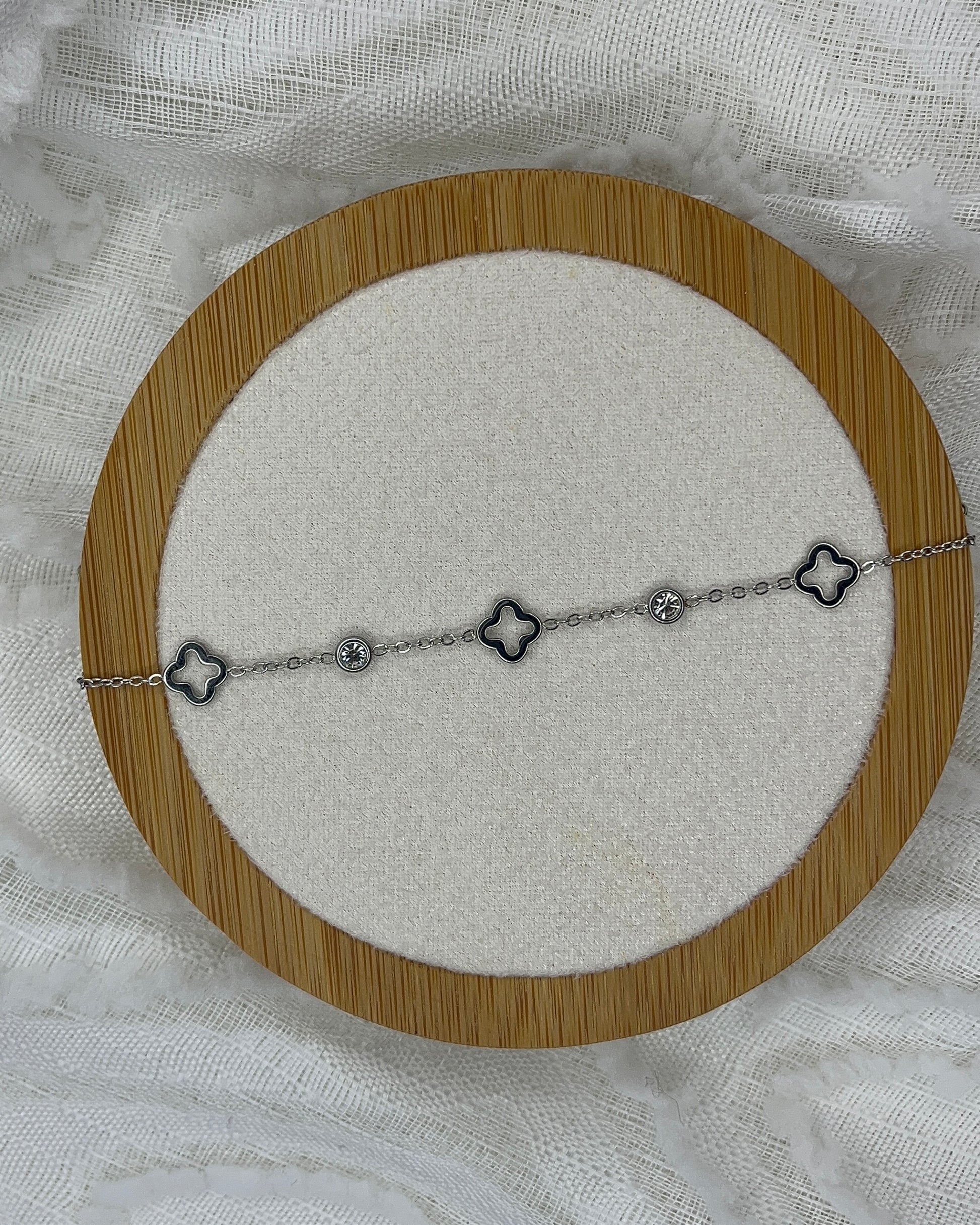 Bracelet en acier inoxydable blanc et oxyde de zirconium.