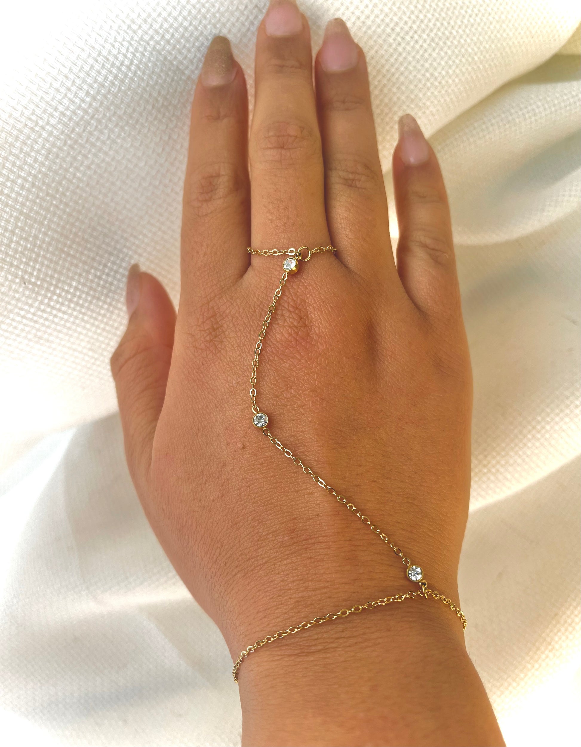 Chaîne de main en acier inoxydable doré avec oxyde de zirconium.