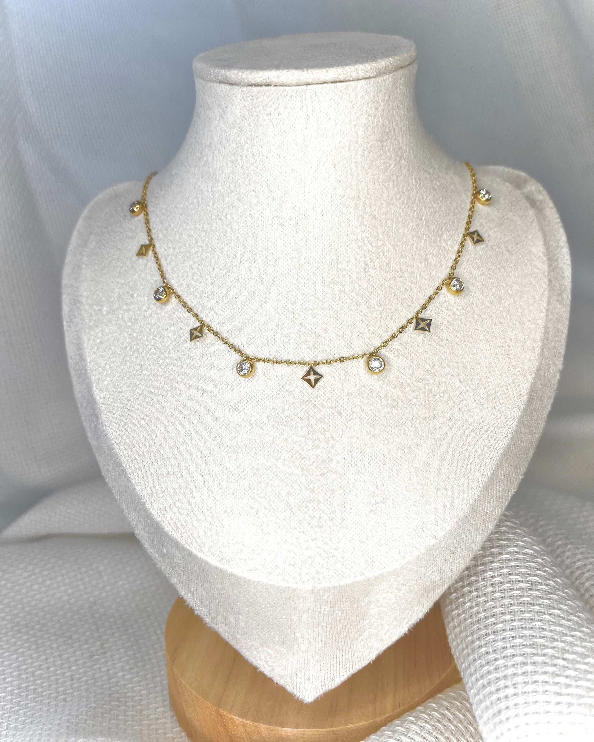 Collier en acier inoxydable doré et oxyde de zirconium.