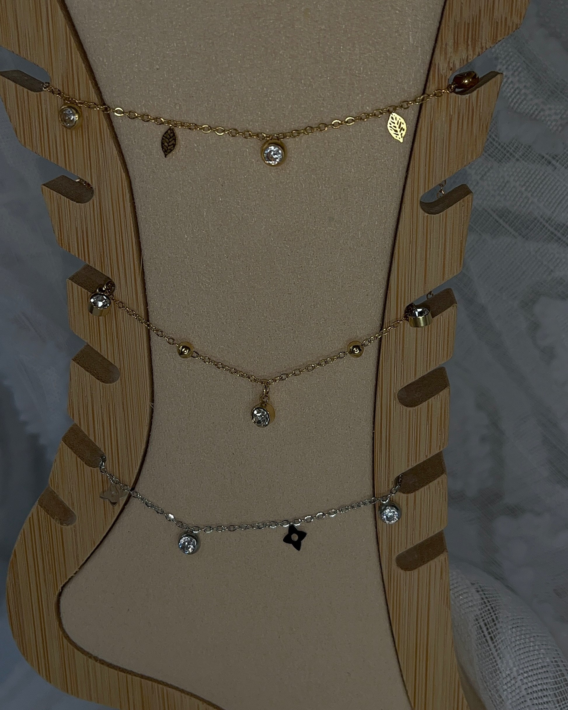 Chaîne de cheville en acier inoxydable et oxyde de zirconium.